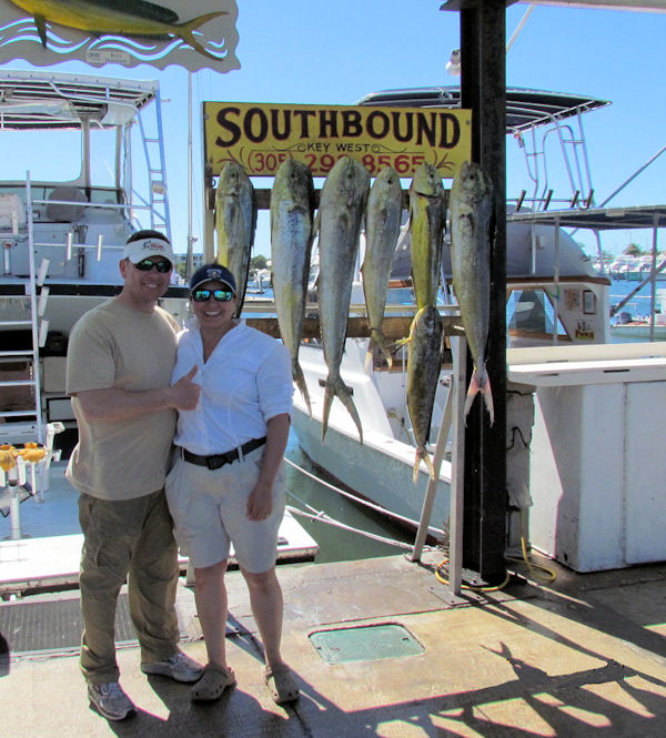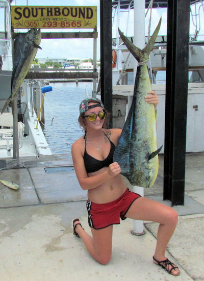 So far, this years dolphin season has been pretty good. Lots of fish and a few big ones around. The water is warming up but most of the fish are still in close. This is great when you have a half day. Later on, into July and August, as the water warms up the fish tend to move further offshore. The calmer it is, the more the water warms and the sooner the fish will move further out. The current also has an affect on things. Right now, the Gulf Stream is in very close. The current just outside the reef is running very strong to the east. Yesterday, I was trolling West at 1,000rpm and the boat was moving at about 2.5-3kts according to my GPS. When I turned East, I was moving at 8.5-9kts without touching the throttle at all! That’s a lot of current!! The good thing is that, even if you go to the same spot to start each day, you still fishing a different part of the ocean. The water, debris and weed you fished yesterday is at least 50miles east of us and the water, debris and weed you’re fishing today was at least 50 miles West of KW yesterday, so most likely, it hasn’t been fished yet. Kind of like getting a fresh piece of ocean delivered to fish every day! When the current is running like this, you can troll west for 3/4 of your trip to the west and then turn east and get back to where you started or further east in the last quarter of the trip. Likewise, you have to be careful not to troll too far east or you’ll never get home on time.